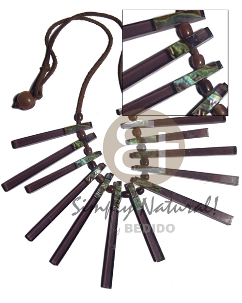 Cleopatra choker in leather thong w/ 13pcs. clear gray resin sticks in w/ paua top accent / 55mmx5mmx5mm / 70mmx5mmx5mm / 18in