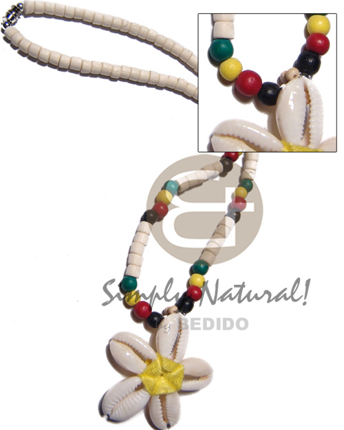 Rasta /bleach white 4-5mm coco pklt and sigay flower pendant / yellow / 18 in