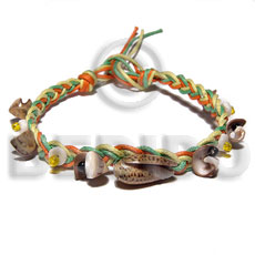 Orange/yellow/green wax cord macrame w/ olive shells accent