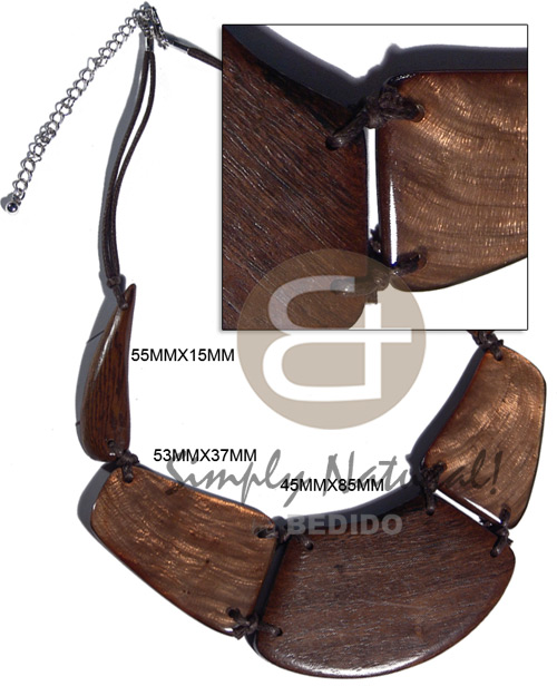 Robles wood choker w/ laminated dark golden brown capiz combi in wax cord and extender chain / 16 in
