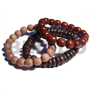Beach bum series / elastic hardwood beads - 8mm round rosewood, rounded oval bayong 10x15mm and robles pokalet 5x8mm trio