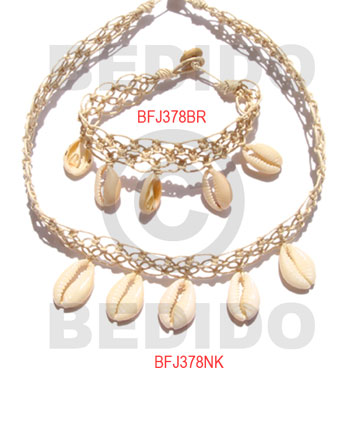 Tags: Sigay Cowry Shell, Macrame thread, White, Set Jewelry Necklace Bracelets, Set Jewelry