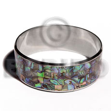 Stainless Steel Paua Abalone Laminated Crazy Cut 1 inch 65 mm iridescent Bangles - Shell Bangles BFJ