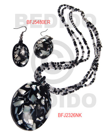 • Trocha Shell Black Set Jewelry Earrings Necklace Laminated Set Jewelry BFJ040SJ