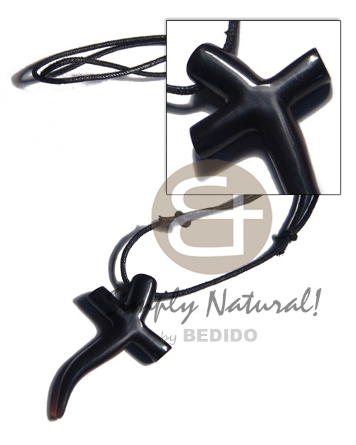 • Wax Cord adjustable Black 45 mm Cross Carabao Horn Necklace - Surfer BFJ3600NK