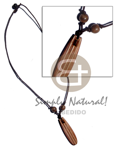45mmx13mm wooden surfboard w/ fin pendant on wax cord w/ wood beads accent