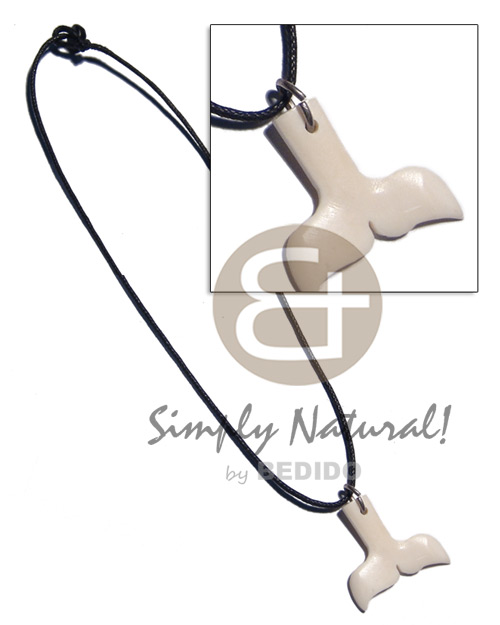 28mmx8mmx30mm carabao bone fishtail pendant on wax cord