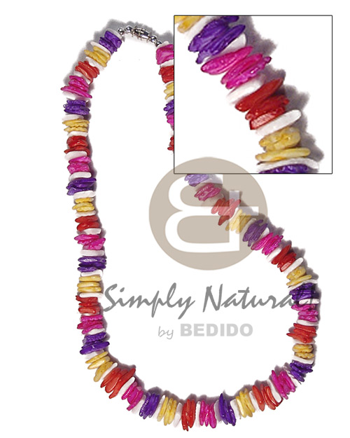 • White Rose Yellow Dyed 18 inches Multi-Color Red Blue White Puka Shell Necklace BFJ3720NK