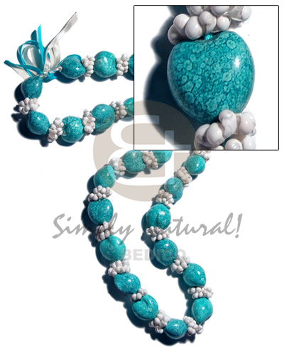 Kukui Nuts Ribbon Black Lumbang Seed Mongo Green Shell Kukui Lei Necklace BFJ056LEI