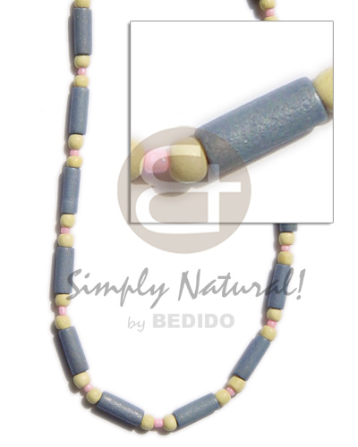 White Wood Glass Beads Pastel Blue Yellow 18 inches Dyed Wooden Necklaces BFJ277NK