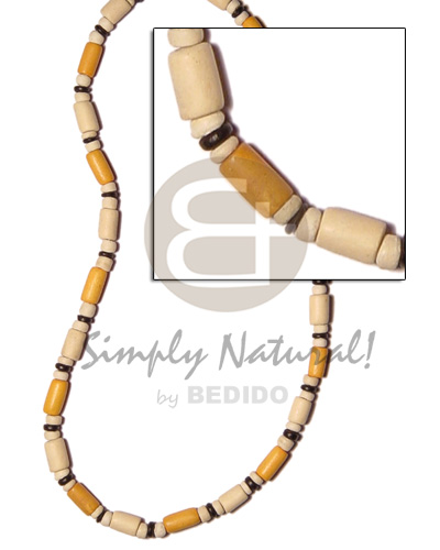 • White Wood Golden Yellow Tube Pokalet Wood Dyed Wooden Necklaces BFJ501NK