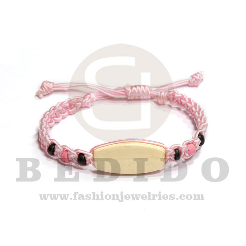 Macrame braided bracelet pink cord with 30mm wood bleached id adjustable bracelet
