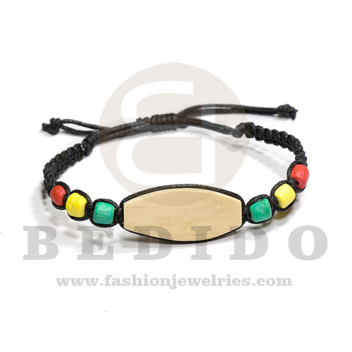 Macrame braided bracelet black in 30mm wood bleached id with rasta beads adjustable bracelet