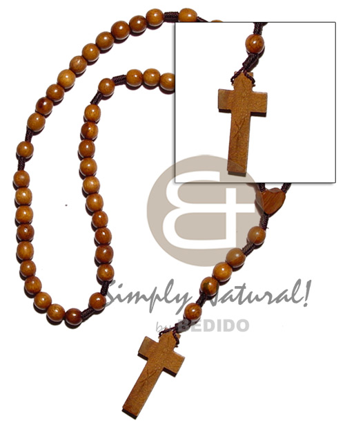 Rosary 10mm nat. wood beads / 24in plus 6in amd 45mmx25mm wooden cross