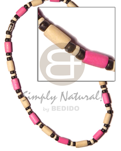 Tags: Wood Beads, Tube, Black, Pink, Natural White, Multi-Color, Dyed, Wooden Necklaces