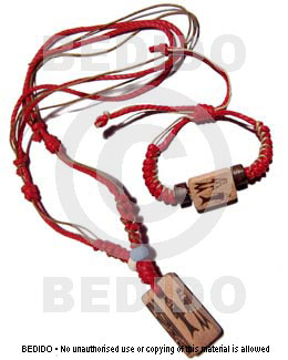 Wood Orange Set Jewelry Necklace Bracelets Macrame thread Set Jewelry BFJ016SJ
