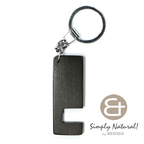 Natural wood stained in black with semi gloss top coat phone stand in chrome keychain 64mm x 24mm x 5mm