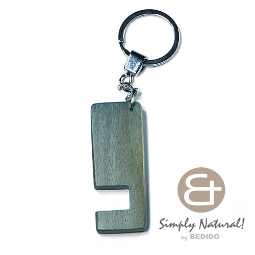 Natural wood stained in blue with semi gloss top coat phone stand in chrome keychain 64mm x 24mm x 5mm